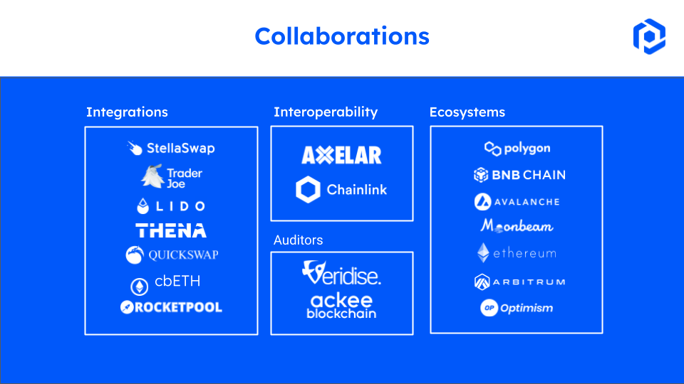 Prime uses Axelar and Wormhole as General Message Passers for the protocol. Axelar and Wormhole allow for cross-chain interoperability, enabling Prime users to quickly and securely manage their positions on different blockchains. Axelar and Wormhole's infrastructure will allow our Master State on Moonbeam to communicate securely with applications on many other blockchains.